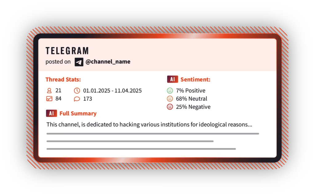 Dark web chatter moves fast – and so do threats. Cerberus AI summarizes dark web chat to help analysts quickly extract intelligence from the noise.