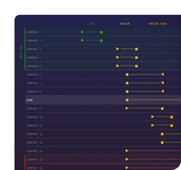 Instantly benchmark your cyber risk relative to peers, accurately estimate potential losses, and make informed decisions in mitigating the most impactful threats to your business.