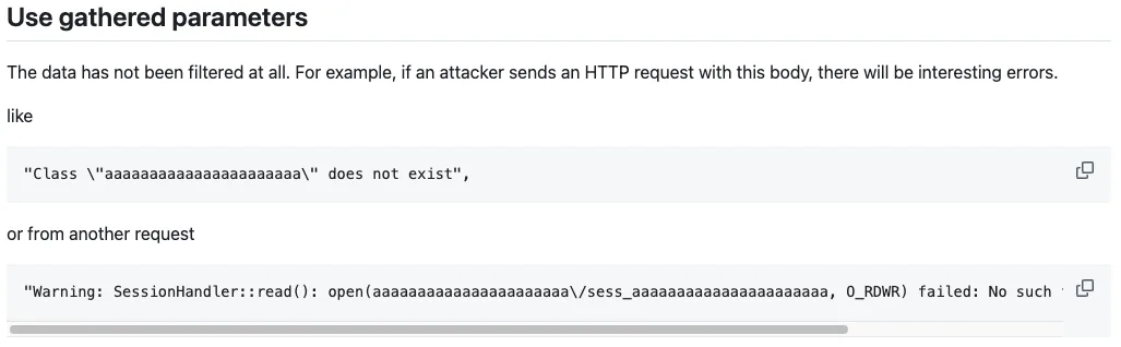 In the patch, they’ve limited the types that can be instantiated in constructors to only “simple” types (strings, ints, floats, doubles, and booleans) and types matching a specific pattern for their names, such as MagentoTaxApiDataTaxRateInterface. With this information in mind, we knew we were looking for complex types, like MagentoFrameworkSimplexmlElement from the previous critical Magento vulnerability.